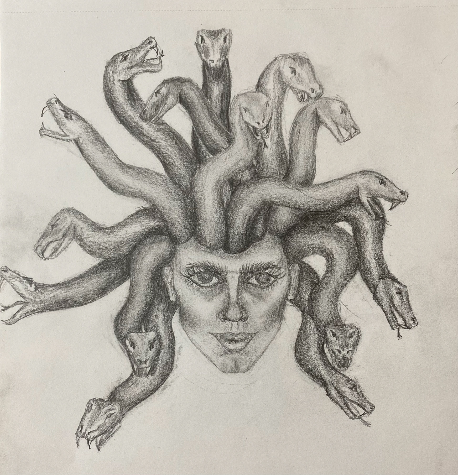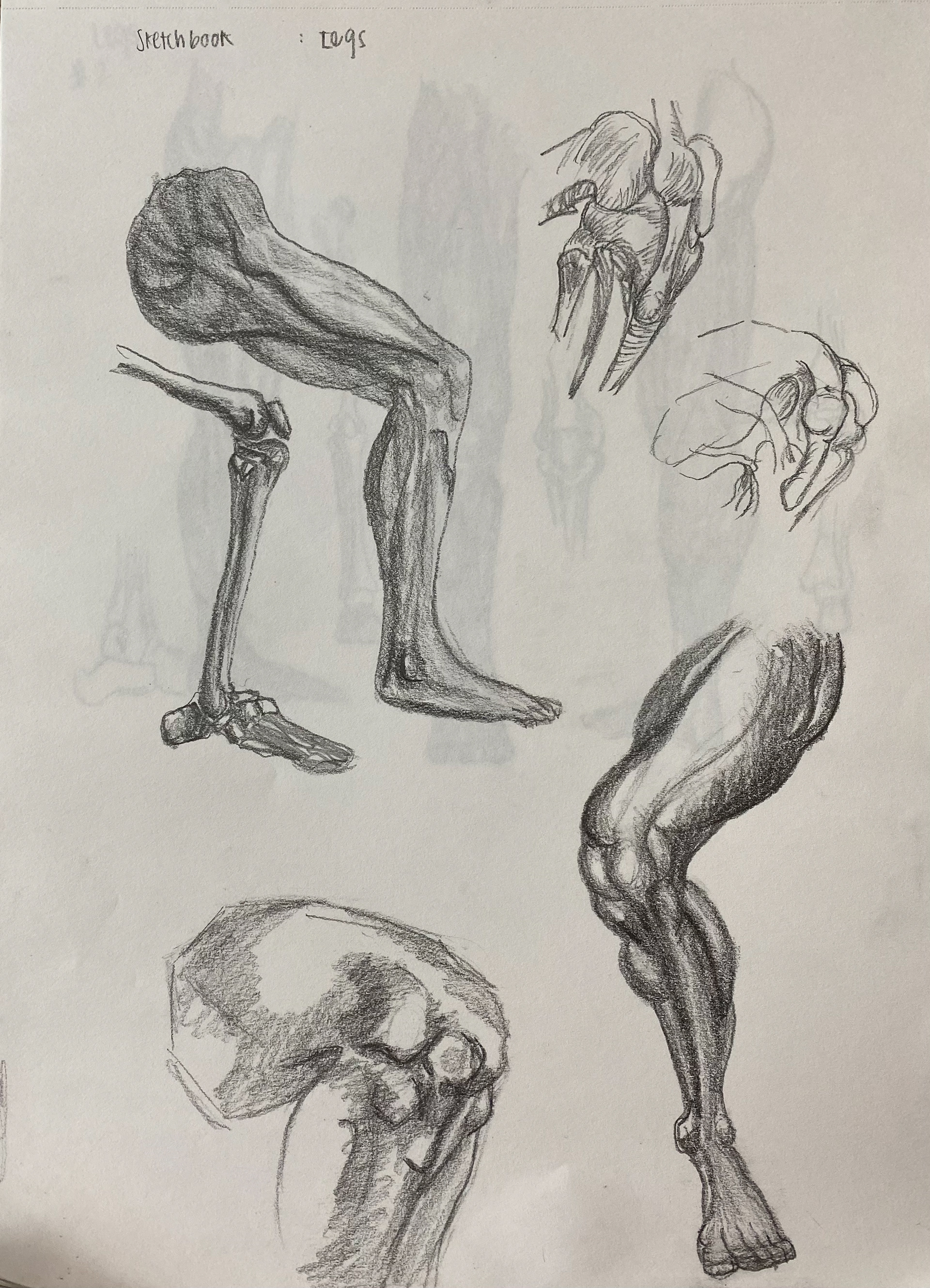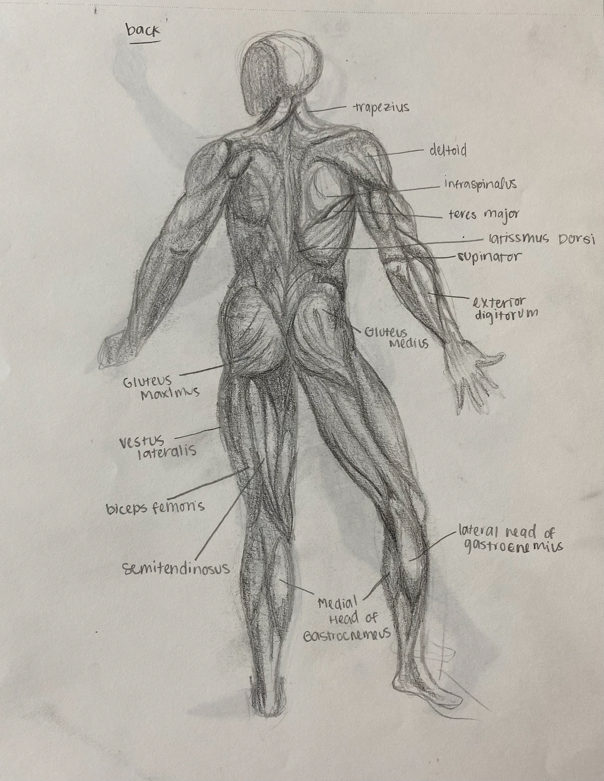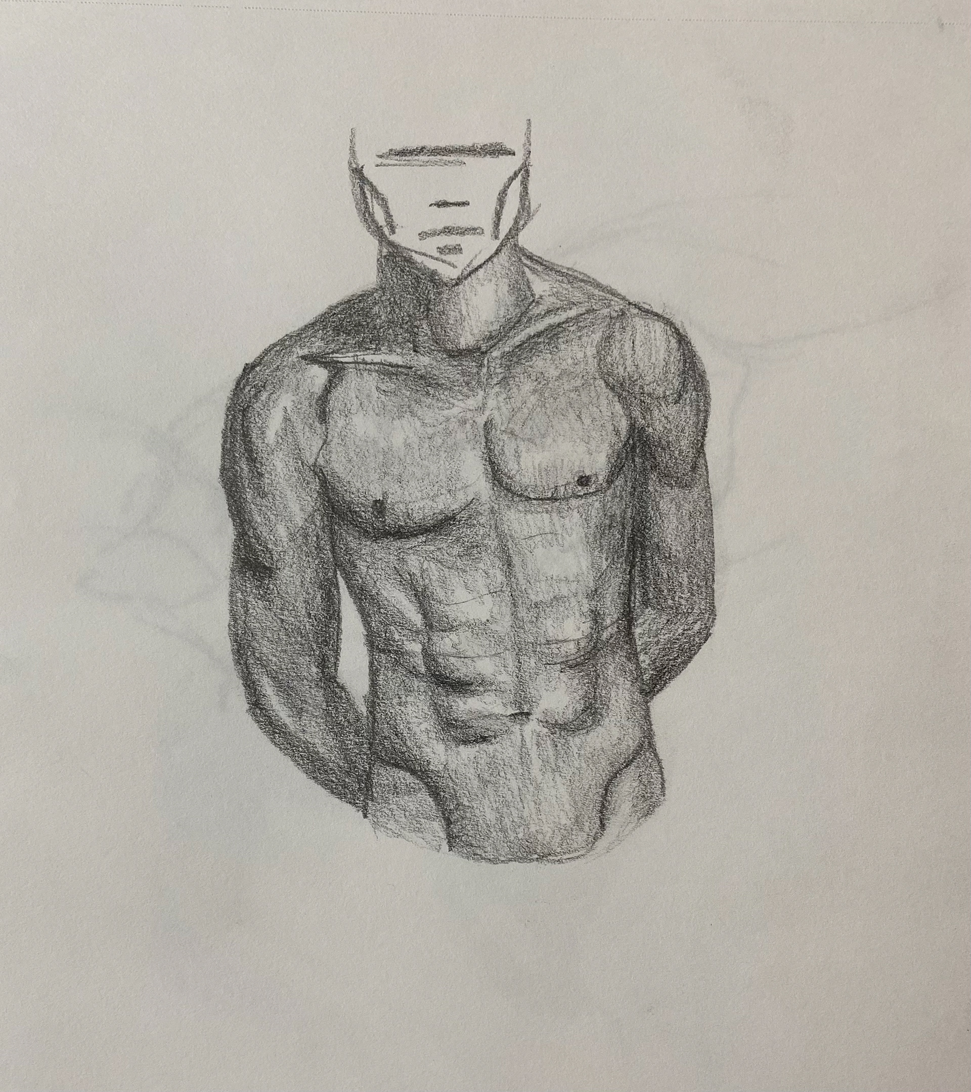 18x24 in drawing paper and charcoal. This is a study of the human head and face and its proportions. The top of the page is a proportional line drawing of the face, whereas the bottom is the realistic drawing of the face.